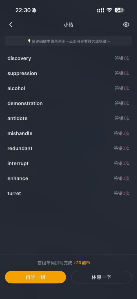 每日单词:Day1 作者: daidaimao 分类: 呆呆猫努力坚持 发布时间: 2026-02-09 22:55 难度很低 坚持英语记忆力 发表回复 取消回复您的邮箱地址不会被公开。 必填项已用 * 标注* * 在此浏览器中保存我的显示名称、邮箱地址和网站地址,以便下次评论时使用。