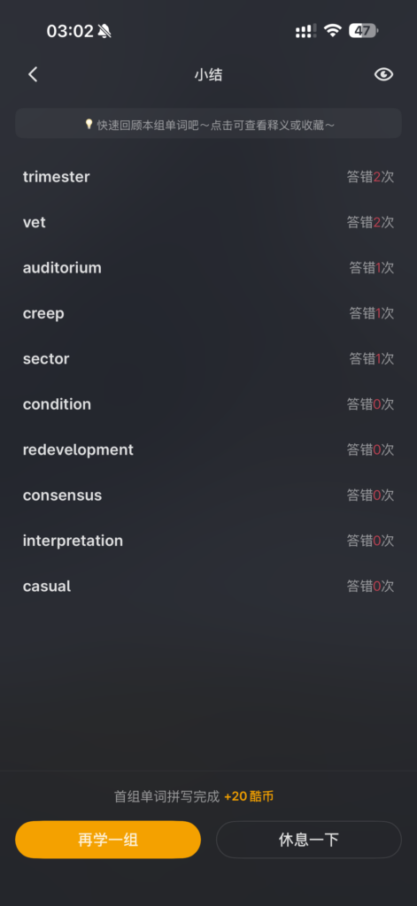 每日单词:Day11 作者: daidaimao 分类: 呆呆猫努力坚持 发布时间: 2026-02-21 03:06 君子之交淡如水,即使不常相见,依旧有感情与信赖 坚持英语记忆力 发表回复 取消回复您的邮箱地址不会被公开。 必填项已用 * 标注* * 在此浏览器中保存我的显示名称、邮箱地址和网站地址,以便下次评论时使用。