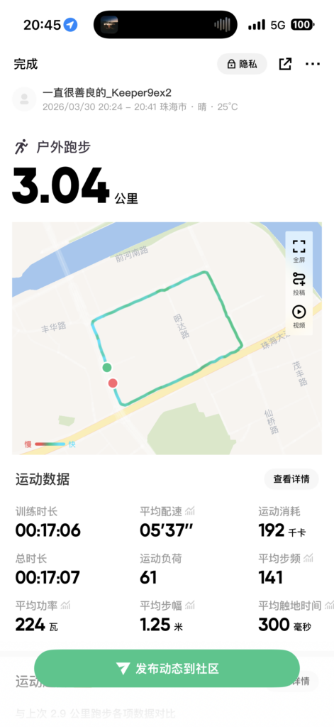 跑步日:Day6 作者: daidaimao 分类: 呆呆猫健身专区 发布时间: 2026-03-30 22:07 这个配速很满意 run away快乐 发表回复 取消回复您的邮箱地址不会被公开。 必填项已用 * 标注* * 在此浏览器中保存我的显示名称、邮箱地址和网站地址,以便下次评论时使用。